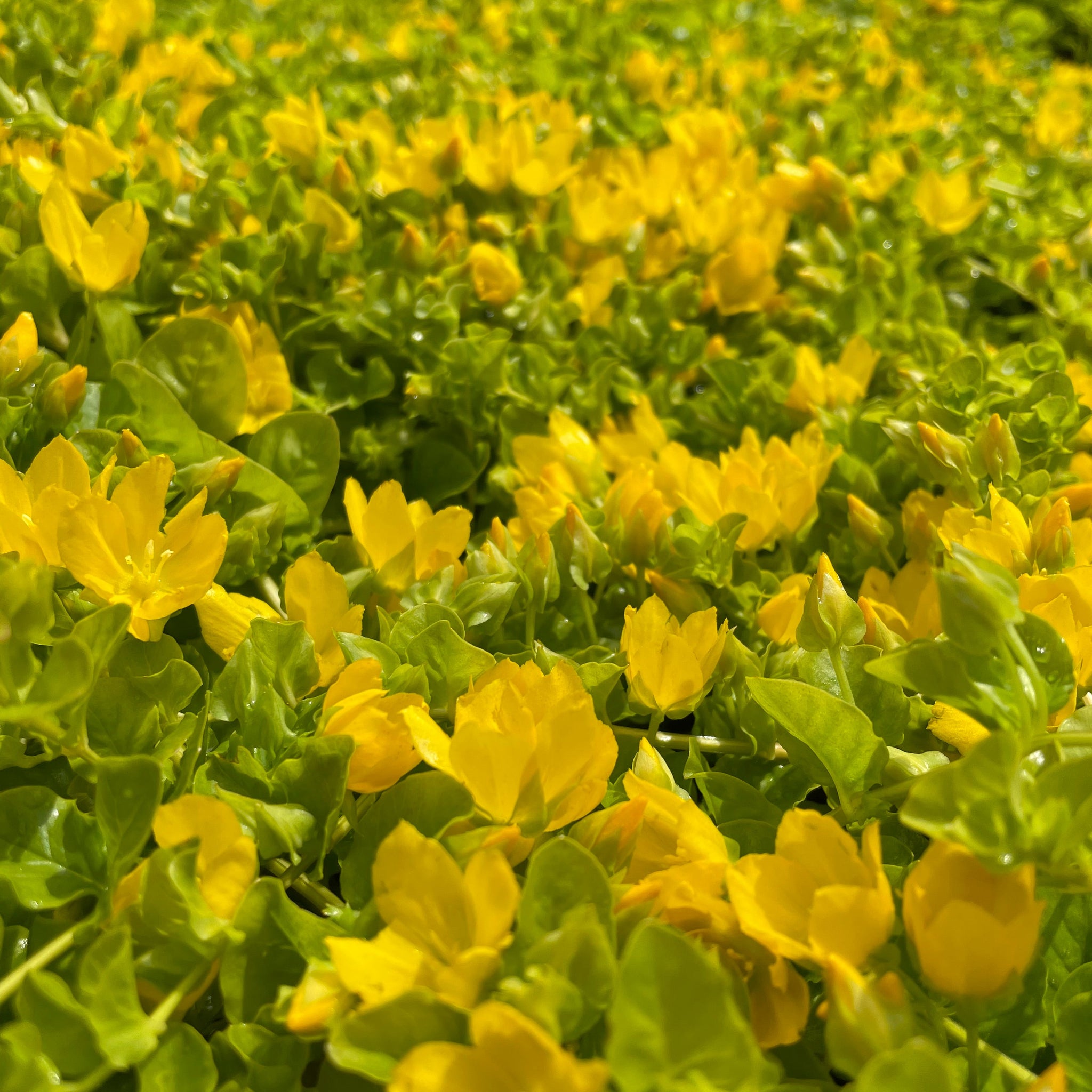Creeping jenny is spreading perennial plant which produces yellow flowers in the summer. It will die back over winter and grow again in the spring. Lycimachia Nummalaria looks great in hanging baskets, rockeries, as a ground cover plant and will also look great at pond edges as the trailing stems will float on water. Creeping Jenny is a great finishing touch to plant alongside other plants as a gap filling plant to create a tropical natural looking garden. Plant 2 foot apart in full sun or part shade. This plant is fast growing.