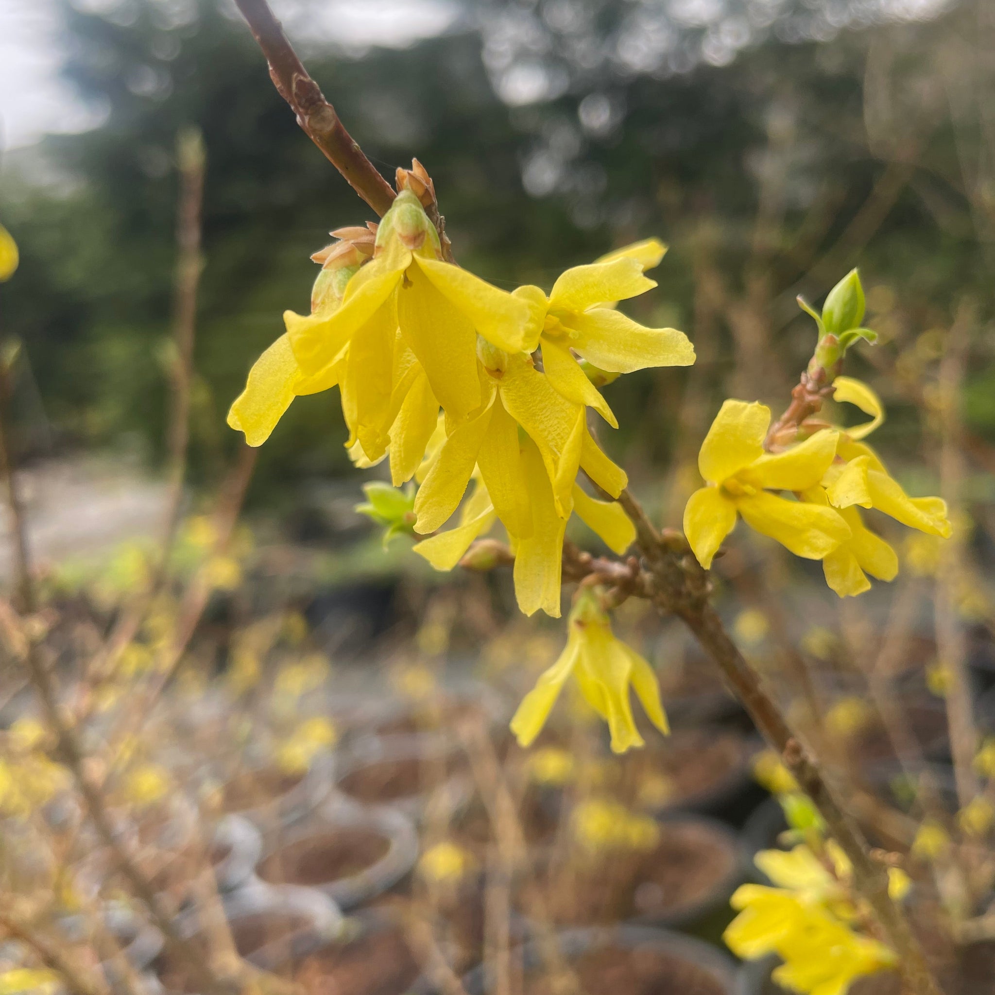Forsythia, also known as golden bells, yellow bells and the Easter tree. Forsythia X is a popular early spring flowering shrubs for gardens and parks. Grown with dark brown branches and beautifully scented bright yellow flowers, followed by dense green leaves throughout the season. Forsythia can grow up to 3 meters tall and 2.5 meters wide. The stems make a great addition to a cut flower display. They are grown and prised for being tough, reliable garden plants. Will grow well in full sun or shade. Ideal as an ornamental shrub in flower beds, or pots and suitable as a hedge. The branches can also be cut and used in flower bouquets in vases. To propagate take cuttings once the flowers have faded.